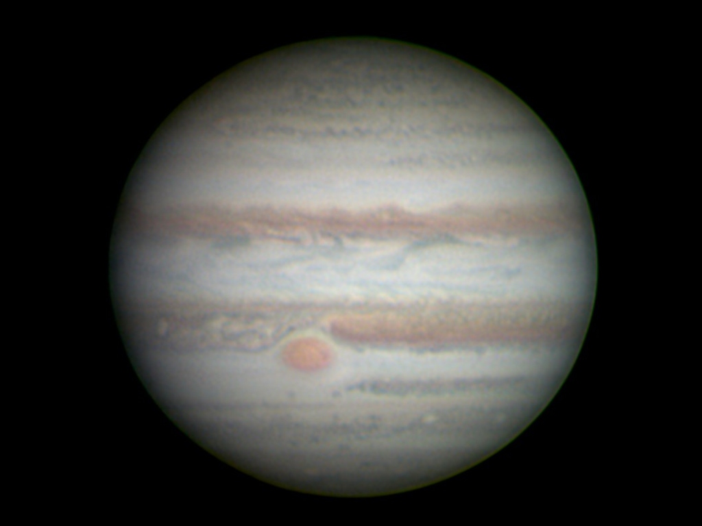 | Teleskop: ACF 16" 2x-Barlow, f=8 m - Kamera: 462C, Bel.=4 Serien zu 10000 frames, 30%, mit WinJupos derotiert |